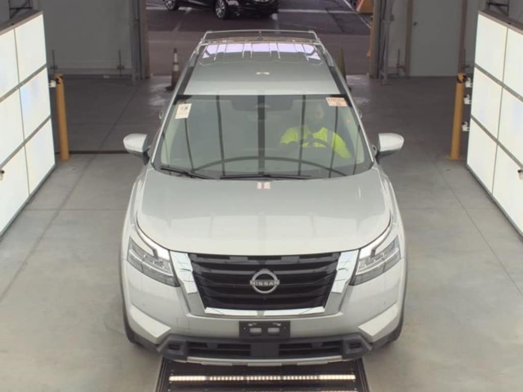 This Pathfinder is well equipped with 4WD, 3rd row seats: bench, 4-Wheel Disc Brakes, 6 Speakers, ABS brakes, Air Conditioning, Alloy wheels, AM/FM radio: SiriusXM, Auto High-beam Headlights, Auto-dimming Rear-View mirror, Automatic temperature control, Axle Ratio: 4.334, Bench Seat Carpeted Floor Mats (Set of 4), Black Splash Guards (Set of 4), Brake assist, Bumpers: body-color, Cross Bars, Delay-off headlights, Driver door bin, Driver vanity mirror, Dual front impact airbags, Dual front side impact airbags, Electronic Stability Control, Emergency communication system, Exterior Parking Camera Rear, Four wheel independent suspension, Front anti-roll bar, Front Bucket Seats, Front Center Armrest, Front dual zone A/C, Front reading lights, Fully automatic headlights, Garage door transmitter: HomeLink, Heated door mirrors, Heated Front Bucket Seats, Heated front seats, Heated steering wheel, Illuminated entry, Knee airbag, Leather steering wheel, Leather-Appointed Seating Surfaces, Low tire pressure warning, Navigation system: NissanConnect with Navigation and Services, Nissan Connect featuring Apple CarPlay and Android Auto, NissanConnect w/Navigation & Services, Occupant sensing airbag, Outside temperature display, Overhead airbag, Overhead console, Panic alarm, Passenger door bin, Passenger vanity mirror, Power door mirrors, Power driver seat, Power Liftgate, Power passenger seat, Power steering, Power windows, Radio data system, Radio: AM/FM Audio System, Rear air conditioning, Rear anti-roll bar, Rear reading lights, Rear seat center armrest, Rear side impact airbag, Rear window defroster, Rear window wiper, Reclining 3rd row seat, Remote keyless entry, Security system, Speed control, Speed-sensing steering, Split folding rear seat, Spoiler, Steering wheel mounted audio controls, Tachometer, Telescoping steering wheel, Tilt steering wheel, Traction control, Trip computer, Turn signal indicator mirrors, Variably intermittent wipers, and Wheels: 18" x 8J Machined Alloy.