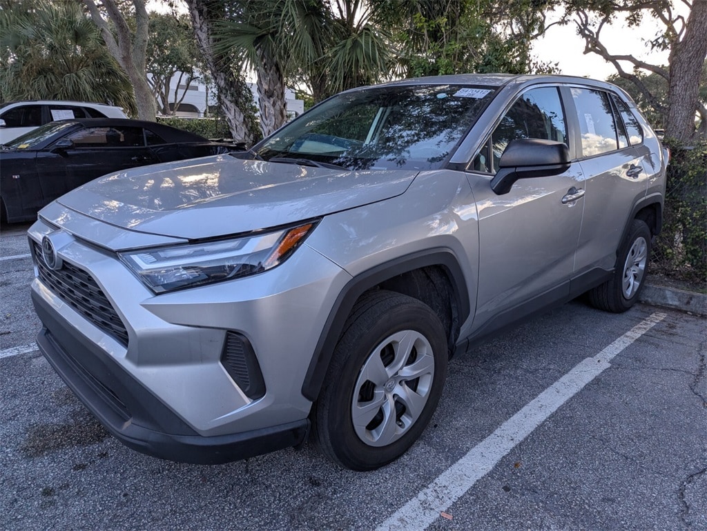 2023 Toyota RAV4 LE Beautifully finished in Silver with Black Cloth interior. 2.5L 4-Cylinder DOHC Dual VVT-i 4D Sport Utility FWD 8-Speed Automatic **CLEAN CARFAX**, **MUST SEE TO APPRECIATE**, **EXTRA CLEAN**, Black w/Fabric Seat Trim, 17" Steel Wheels, 4-Wheel Disc Brakes, 6 Speakers, ABS brakes, Air Conditioning, AM/FM radio: SiriusXM, Auto High-beam Headlights, Axle Ratio: 3.177, Brake assist, Bumpers: body-color, Driver door bin, Driver vanity mirror, Dual front impact airbags, Dual front side impact airbags, Electronic Stability Control, Emergency communication system: Safety Connect (10-year trial), Exterior Parking Camera Rear, Fabric Seat Trim, Four wheel independent suspension, Front anti-roll bar, Front Bucket Seats, Front Center Armrest, Front reading lights, Illuminated entry, Knee airbag, Low tire pressure warning, Occupant sensing airbag, Outside temperature display, Overhead airbag, Overhead console, Panic alarm, Passenger door bin, Passenger vanity mirror, Power door mirrors, Power steering, Power windows, Radio data system, Radio: AM/FM/XM Audio System, Rear anti-roll bar, Rear seat center armrest, Rear window defroster, Rear window wiper, Remote keyless entry, Speed control, Speed-sensing steering, Split folding rear seat, Spoiler, Steering wheel mounted audio controls, Tachometer, Telescoping steering wheel, Tilt steering wheel, Traction control, Trip computer, Black w/Fabric Seat Trim. Clean CARFAX. Priced below KBB Fair Purchase Price! 27/35 City/Highway MPG